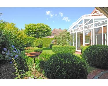Elegantes Einfamilienhaus in ruhiger Lage mit wunderschönem Garten! Diese sehr gepflegte Immobilie befindet sich in einem verkehrsberuhigten Wohngebiet in Henstedt-Ulzburg. Sie wurde 1995 in massiver Rotklinker-Bauweise architektonisch anspruchsvoll errichtet und überzeugt durch einen durchdachten und großzügigen Schnitt. Im Erdgeschoss (ca. 82m²) befinden sich das Wohnzimmer mit benachbartem Essbereich (insgesamt ca. 37m²) und Zutritt zum Wintergarten (ca. 25m²), die Wohnküche, der Flur mit Garderobennische sowie ein Gäste-Duschbad. Die helle Küche wurde 2016 mit hochwertigen Geräten ausgestattet (6-Platten-Ceranfeld, Miele-Herd mit Pyrolyse) und bietet einen behaglichen kleinen Essplatz. Das Gästeduschbad wurde 2015 geschmackvoll modernisiert. Im lichtdurchfluteten Wintergarten schweift der Blick in den zauberhaft angelegten Garten - Pflanzen und Blumen säumen Weg, Rasen und zwei Terrassen, der üppige Bestand von Rhododendren, Büschen und Bäumen schafft natürliche Abgrenzungen. Die optimale Südwest-Ausrichtung profitiert von ganztägiger Sonne, eine elektrische Markise spendet dem Wintergarten im Sommer angenehmen Schatten. Der Wintergarten wurde 2008 errichtet und bietet hochwertigen Komfort durch die Wärmeschutzverglasung, eine Fußbodenheizung und elektrisch steuerbare Dachfenster.
