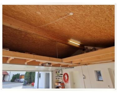 Doppelgarage, 41 m², mit elektrisch bedienbarem Tor (auch mit Fernsteuerung), direktem Hauszugang und Tür zum Garten;