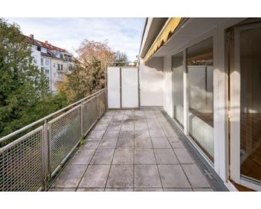 Zwei Balkone (Ost- und Westausrichtung) sowie sonnige Dachterrasse mit Blick ins Grüne