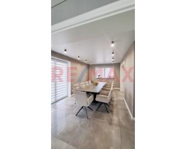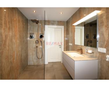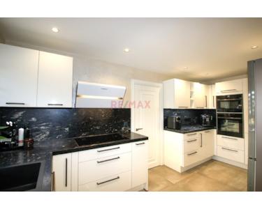 Hier können Sie sowohl die kühlen Winterabende am wohligen, warmen Kamin verbringen, als auch die warmen Sommertage im Freien auf dem Balkon. Am großzügigen Esstisch ist Platz für die große Familie, von hier kommen Sie in die moderne Küche mit schicker Einbauküche, die keine Wünsche offenlässt.