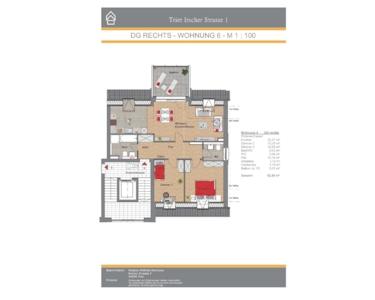 Das Angebot bezieht sich auf die Eigentumswohnung Nr. 6 im Dachgeschoss. Die Wohnung besteht aus dem attraktiven Wohnraum mit integrierter Küche (mit einer modernen Einbauküche) von ca. 32 m² mit Zugang auf den schönen Balkon von ca. 10 m². Von der zentralen Diele erreichen Sie das geräumige Schlafzimmer von ca. 13 m², das Bad (ausgestattet mit Wanne und Dusche), das Büro/Kinderzimmer von ca. 10 m² und das Gäste-WC.