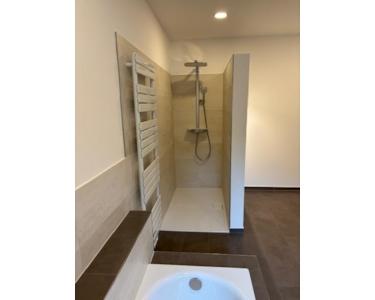 Das große Bad im Obergeschoß samt Badewanne und einer zusätzlichen Dusche lädt zum Entspannen und Wohlfühlen ein.