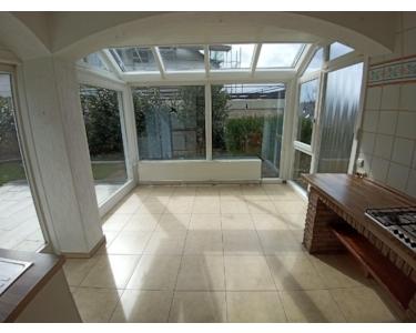 - Geflieste Terrasse an der Hauptwohnung mit elektrischer Markise