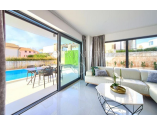 Die Ausstattung umfasst PVC-Fenster mit Aluminiumrollläden, Fußbodenheizung, Klimaanlage und Energieklasse A.