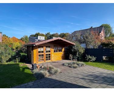 Der Garten ist pflegeleicht angelegt und eingefriedet. Ein großzügiges Gartenhaus rundet das Außenangebot perfekt ab.