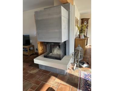 - Hark Kamin (Betonoptik mit Natursteinverkleidung/Marmor)