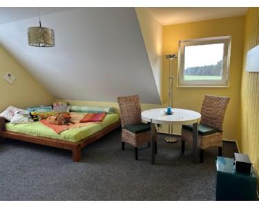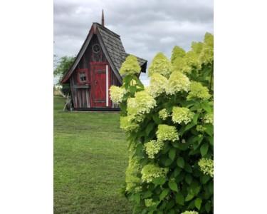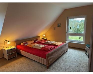 Der liebevoll gestaltete Garten ist von einer mehrfarbig blühenden Hecke umsäumt und bietet zahlreiche Rückzugsorte. Eine Feuerstelle lädt zu geselligen Abenden ein, und als besonderes Highlight gibt es ein kleines Hexenhaus, das abends atmosphärisch beleuchtet wird.
