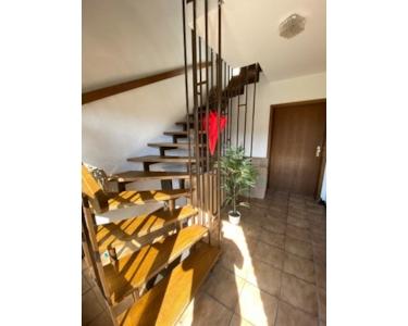 Die gemütliche Einliegerwohnung liegt im Dachgeschoß des 1984 in Alleinlage südlich der ehemaligen B1 erbauten Einfamilienhauses.