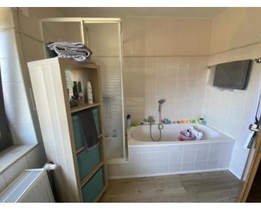 Das Tageslichtbad verfügt über Dusche und Wanne. Die Wohnung ist mit einem hellen Vinylparkett in Holzoptik ausgelegt. Zur Wohnung gehört noch ein Spitzboden, der als Stauraum genutzt werden kann. Die Beheizung des Gebäudes erfolgt durch eine Erdwärmepumpe.