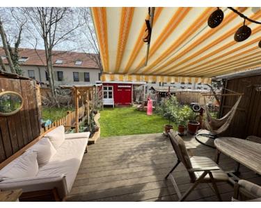 Zum Haus gehört außerdem ein ca. 68 m² großer Garten mit einem 2022 erbauten Gartenhaus.