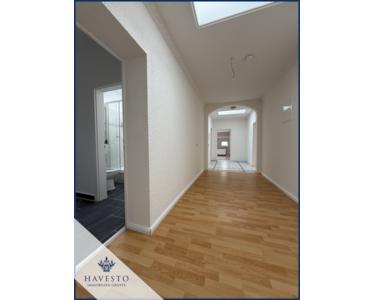 Bereits beim Betreten fällt das freundliche und lichtdurchflutete Wohngefühl auf. Große Fensterflächen und mehrere neue Velux-Dachfenster lassen jeden Raum hell und einladend wirken. Das Herzstück der Wohnung bildet ein weitläufiger Wohnbereich, der problemlos Platz für ein gemütliches Wohnzimmer und einen großen Essbereich bietet. Ob Familienabende, gemeinsame WG-Dinner oder gesellige Runden mit Freunden – hier ist genügend Raum für ein lebendiges Miteinander.