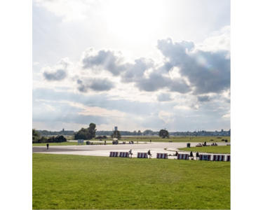 Das Tempelhofer Feld ist fußläufig erreichbar, ideal zum Joggen, Drachensteigen oder Entspannen.