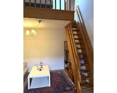 Sie besitzt 2 voneinander unabhängige Wohneinheiten mit je ca. 30 qm, bestehend aus einem Wohnzimmer (14 qm) und der Galerie mit Schlafzimmer (7 qm), Vorraum/Arbeitszimmer (6 qm) und einer Dusche/WC (3 qm) zur komplett eigenen Nutzung (abschließbar). Gemeinsam genutzt werden die Diele, der Essbereich, die kleine Küche und das Gäste-WC (zusammen knapp 20 qm). Die Wohnung ist daher ideal für eine 2er-WG geeignet.
