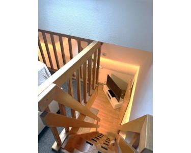 Die Maisonette Wohnung ist mit einer neuwertigen Einbauküche mit zwei Herdplatten und einem Kühlschrank ausgestattet. Die Bäder und das Gäste-WC verfügen über WC, Dusche und Waschbecken.