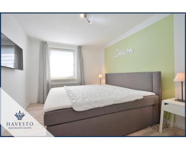 Das Schlafzimmer bietet Platz für ein komfortables Boxspringbett sowie Stauraummöglichkeiten. Das modernisierte Duschbad mit WC rundet den funktionalen Grundriss ab.