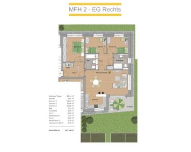 Das Angebot bezieht sich auf die Wohnung Erdgeschoß rechts miteigenem Garten. Vom Eingang mit Empfangsbereich gelangen Sie in die Garderobe mit Abstellbereich, das geräumige Elternschlafzimmer von 17 m² sowie das Wannenbad. Sie gelangen ebenfalls vom Empfang in den attraktiven Wohnbereich mit integrierter Küche von insgesamt 41 m² mit Ausgang auf die sonnige Terrasse von ca. 11 m² und in den eigenen Garten. Das Sondernutzungsrecht an der Gartenfläche hat eine Größe von ca. 102 m². Vom Flur 2 erreichen Sie zwei helle Kinderzimmer/Arbeitszimmer von jeweils 11 m² sowie Duschbad mit Fenster.