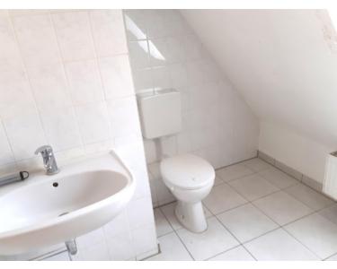 Die Wohnung ist sofort bezugsfertig und verfügt über 1 Zimmer und Flur im 1.OG. Über eine Holztreppe kommt man in das darüberliegende Dachgeschoß und hat dort 2 Zimmer, eine offene Küche und ein Bad mit Dusche.