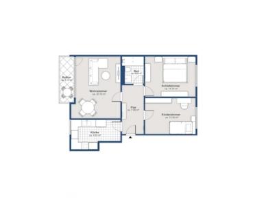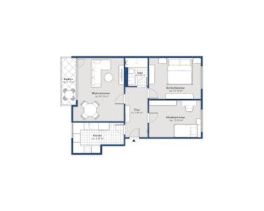 Der Wohnbereich ist das Herzstück der Wohnung. Mit 20,70m² bietet er viel Platz für gemütliche Abende mit der Familie. Von hier aus gelangen Sie direkt auf den überdachten Balkon, der mit 5,10m² zusätzlichen Raum für entspannte Stunden im Freien bietet.
