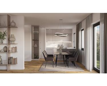 Auf zwei gut strukturierten Etagen verteilen sich insgesamt vier Zimmer, ideal geeignet für Familien mit einem oder zwei Kindern, für Paare mit Homeoffice-Bedarf oder alle, die flexibel bleiben möchten. Der Grundriss ist klar, modern und alltagstauglich konzipiert – mit offenen Wohnbereichen und ruhigen Rückzugsorten.