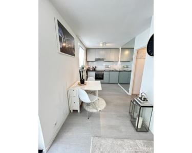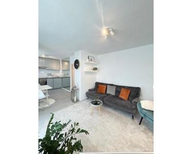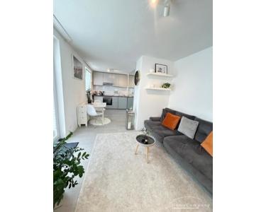 Die Wohnung bietet ein gemütliches Wohnzimmer mit Spiegelwand, Sofa, Arbeitsplatz und TV. Offene Küche mit Spülmaschine und verschiedenen Küchenutensilien. Schlafzimmer mit Boxspringbett 140x200 und Schrankwand. Neues, modernes Bad mit badewanne.
