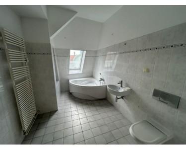 Das großzügige Badezimmer beeindruckt mit einer Eckbadewanne, Tageslicht und hellen Fliesen – ein Ort zum Wohlfühlen. Zusätzlich steht ein separates Gäste-WC zur Verfügung – ein komfortabler Vorteil im Alltag.