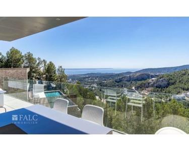 Diese atemberaubende zeitgenössische Traumvilla in Son Vida, einer der exklusivsten und prestigeträchtigsten Gegenden Mallorcas, definiert Luxus neu und kombiniert modernes Design, technologische Innovation und eine unvergleichliche natürliche Umgebung. Der Panoramablick auf das Meer und die Berge kann von jedem Winkel des Hauses aus genossen werden und schafft den perfekten Rahmen für Inspiration und Entspannung. Auf einem 2.184 m2 grossen Grundstück in einer ruhigen Sackgasse gelegen, entfaltet sich die Villa in einem eleganten und funktionalen Design mit 5 Schlafzimmern und 5 Bädern. Das Hauptschlafzimmer mit eigenem Bad und Ankleideraum ist eine Oase der Intimität und Raffinesse. Die Gemeinschaftsbereiche wurden für maximalen Genuss konzipiert: Ein Wohn-Esszimmer mit Kamin und grossen Fenstern, die den Raum mit natürlichem Licht durchfluten.
