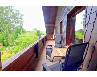 Der große Balkon liegt in Südausrichtung und hat Zugänge von jedem der Schlaf-/Wohnräume. Dort ist auch eine SAT-Schüssel installiert.