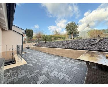 Der Bereich vor dem Haus wurde neu angelegt und bietet zwei Stellplätze vor dem Haus sowie eine Tiefgarage. Links am Gebäude vorbei gelangt man in den weitläufigen Garten in Hanglage, der mit einem gewachsenen Obstbaumbestand beeindruckt. Dieser Bereich eignet sich ideal für Familien, Naturfreunde und Gartenliebhaber und bietet zahlreiche Möglichkeiten zur Erholung oder individuellen Gestaltung. Auch die Terrassenfläche hinter dem Haus wurde im Jahr 2025 neu angelegt und erweitert den Wohnkomfort im Außenbereich.