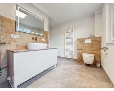 Die umfassende Kernsanierung wurde mit höchstem Qualitätsanspruch durchgeführt. Erneuert wurden unter anderem die Gasbrennwertheizung, die komplette Elektrik, sämtliche Sanitärleitungen, das Dach inklusive Aufsparrendämmung sowie die gesamte Fassade mit einer 16–18 cm starken Dämmung. Dreifach isolierverglaste Kunststofffenster mit elektrischen Rollläden, eine hochwertige Innenausstattung mit Echtholz-Parkett, italienischen Fliesen im Großformat, neue Innentüren sowie eine zeitgemäße Einbauküche runden das Qualitätsniveau ab. Zusätzlich wurde eine Trittschall- und Schallschutzdämmung sowie eine neue Trennung von Schmutz- und Regenwasserleitungen gemäß städtischen Vorgaben umgesetzt.