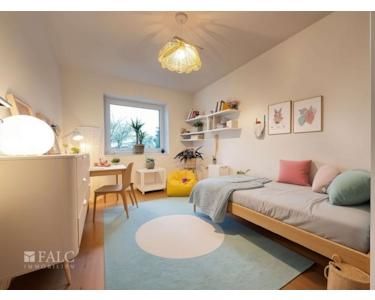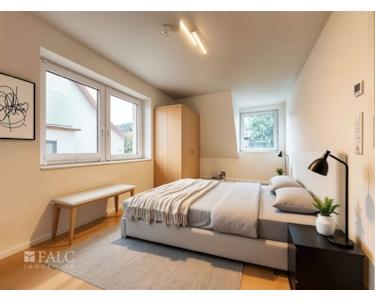Im Dachgeschoss befindet sich ein Schlafzimmer mit angrenzendem Ankleidezimmer, ein großer Aufenthaltsraum sowie ein weiteres Kinderzimmer. Ergänzt wird das Raumangebot durch ein neu errichtetes, hochwertig ausgestattetes Badezimmer mit Badewanne. Das Dachgeschoss ist bis auf ein Zimmer komplett frei von Schrägen und vermittelt dadurch ein großzügiges Wohngefühl. Der von hier aus zugängliche Dachboden bietet zusätzliche Lagerfläche und erweitert die Nutzbarkeit des Hauses.