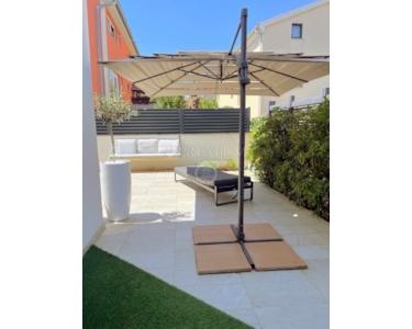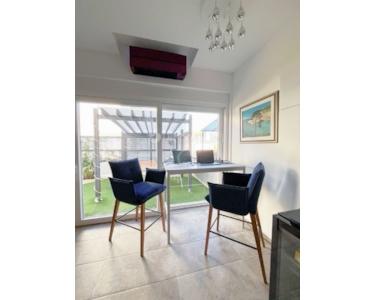 Die Wohnung ist mit hochwertigen, maßgefertigten Möbeln und modernen Sanitäranlagen ausgestattet. Der Garten ist mit einer Außenüberwachungskamera gesichert, und zur Wohnung gehören zwei private Parkplätze mit einer Gesamtfläche von 23 m², ausgestattet mit einer Elektro-Ladestation.