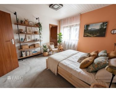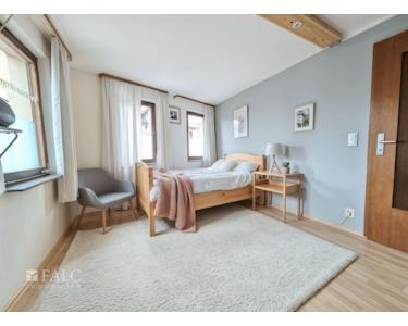 Rechter Hausteil (Anbau, Baujahr 1980): Der Anbau überzeugt mit einem hellen und freundlichen Wohn-Essbereich, der viel Platz für das Familienleben bietet. Eine Küche ergänzt das Raumangebot. Im Obergeschoss befinden sich ein Elternschlafzimmer sowie ein Kinderzimmer – alternativ nutzbar als Büro. Das Badezimmer in diesem Hausteil wurde bislang nicht renoviert und bietet die Chance, eigene Vorstellungen umzusetzen.