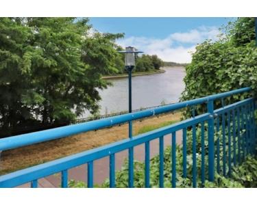 Die ca. 77 m² Wohnfläche verteilen sich auf ein Schlafzimmer, Tageslichtbad mit Wanne und Dusche, einen großzügigen Eingangsbereich, eine abgeschlossene Küche und ein super helles Wohnzimmer, mit großer Fensterfront sowie Sonnenterrasse ausgerichtet zur Elbe.