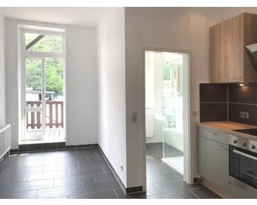 Von der Küche aus gelangt man auf den großzügigen Balkon (Süd/Ost-Ausrichtung).