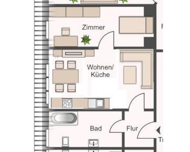 2 Zimmer Wohung mit Wohnküche mit heller, freundlicher Raumwirkung Schlafzimmer mit ausreichend Stellfläche