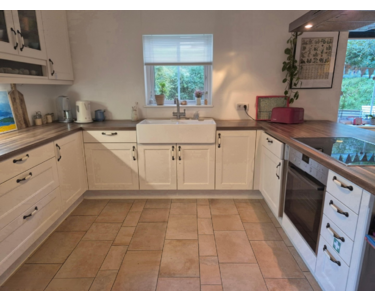 - Marken-Einbauküche mit Keramikspüle von Villeroy & Boch