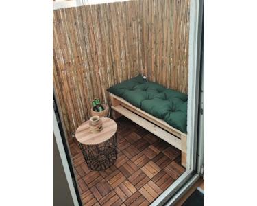 Der sonnige Balkon ist ein perfekter Ort für den Morgenkaffee.