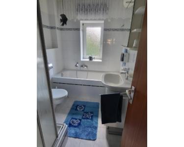 Das Obergeschoss ist mit drei Zimmern und einem Bad mit Badewanne und Dusche ausgestattet.