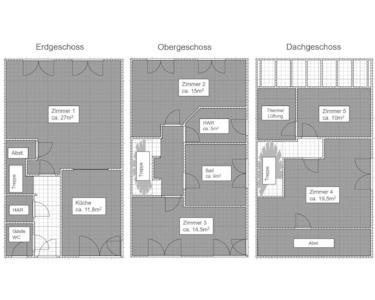 Hinweis: Detaillierte Informationen zu Raumgrößen und Aufteilung finden Sie in den beigefügten Schnitt- und Grundrisszeichnungen (siehe Bildergalerie). Diese zeigen die Gestaltung und Dimensionen der einzelnen Etagen im Überblick.