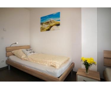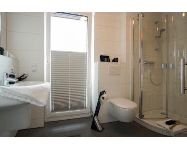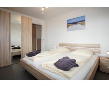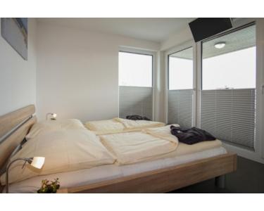 Zurück über den kleinen Flur erreichen Sie die beiden Schlafzimmer, die ebenfalls mit bodentiefen Fenstern ausgestattet sind. Das größere Schlafzimmer bietet ebenfalls einen direkten Zugang auf die großzügige Dachterrasse. Beide Zimmer punkten wieder mit einem fantastischen Blick. Die hellen Wände und die moderne Aufmachung verleihen auch diesen Räumen wieder ein zeitloses Flair.