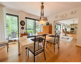 Der über 55 m² große Wohnbereich mit offenem Esszimmer und bodentiefen Fensterelementen ist Ihre neue Wohlfühloase. Von hier aus gelangen Sie auf die überdachte XXL-Terrasse mit einem herrlichen Parkblick.