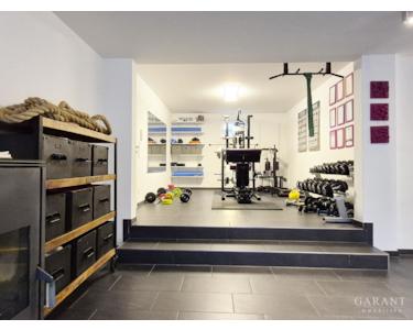 Ein eigener Fitnessraum im Kellergeschoss auf über 50 qm ermöglicht sportliche Aktivitäten unabhängig von Zeit und Wetter, für ein Plus an Lebensqualität im Alltag.