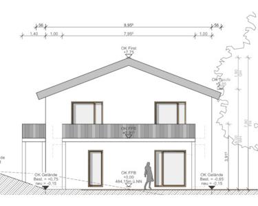 Im nördlichen Bereich des Grundstücks ist zudem der Anbau einer Doppelgarage inklusive einem Abstellraum für Gartengeräte, Fahrräder und mehr genehmigt.