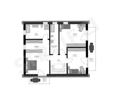 Stellen Sie sich vor, wie Ihr neues Einfamilienhaus, mit einer beeindruckenden Wohnfläche von über 195 qm², in dieser malerischen Umgebung entsteht. Der geplante Entwurf umfasst insgesamt 6 lichtdurchflutete Zimmer, die Raum für individuelle Gestaltung und persönliche Akzente bieten. Zwei liebevoll gestaltete Kinderzimmer werden zu einem Ort des Spiels und Lernens. Das Elternschlafzimmer, ausgestattet mit einem 9 qm² großen Ankleideraum, wird zum Rückzugsort, wo Sie nach einem langen Tag zur Ruhe kommen.