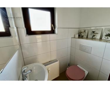 Praktisch und freundlich gestaltet befinden sich die Garderobe das separate WC am Ende des Flurs – ein funktionaler Vorteil für Besucher und Alltag.