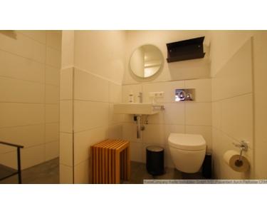 Ebenerdige Dusche, WC, Regal, großes Waschbecken mit Schubladenunterschrank,