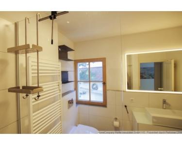 beleuchtbarer Spiegel, kleiner Holzsitz