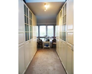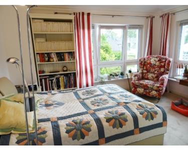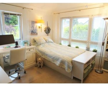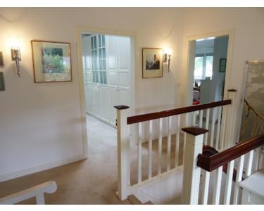 Zwischen beiden Schlafzimmer liegt ein komfortables Ankleidezimmer. Das 2. Schlafzimmer öffnet sich zu einem Home Office. Ein zusätzliches Gäste WC sorgt für weiteren Komfort. Sie schauen- egal aus welchem Fenster oder von der Loggia immer ins Grüne., die Räume sind nicht einzusehen.- wie übrigens auch das ganz Grundstück nicht eingesehen werden kann. Es ist durchaus möglich- durch leichte bauliche Veränderungen 5 Schlafzimmer zu erhalten.