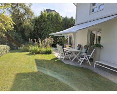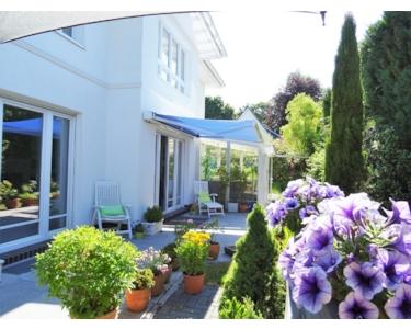 Auf dem nicht einsehbaren Grundstück "geht die Sonne ums Haus". Sie können auf den verschiedenen Terrassen( mit Markisen) der Sonne nachrücken.