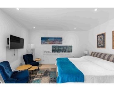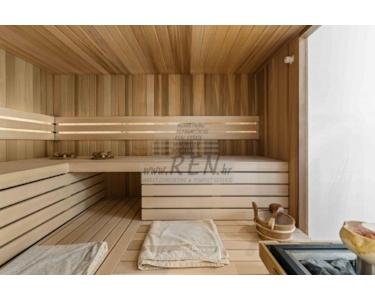 Im Erdgeschoss befinden sich zwei luxuriöse Schlafzimmer, jeweils mit eigenem Bad, eine Garage für drei Autos, eine Waschküche, eine Sauna, ein Wohnbereich sowie eine kleinere Küche.